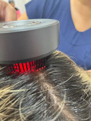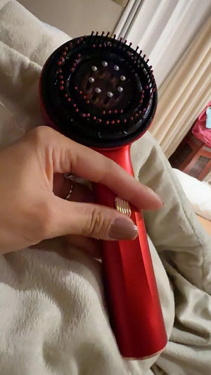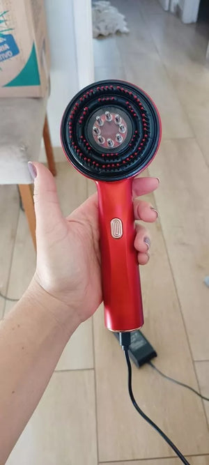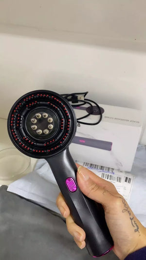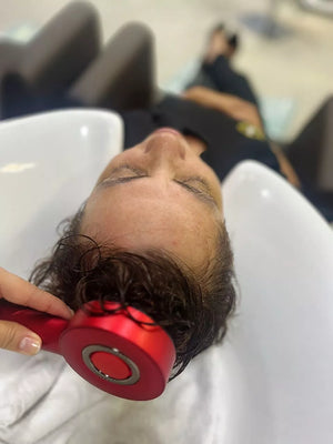 Rejuvenesça o seu cabelo com massagem e luz vermelha para um crescimento saudável e sem esforço.